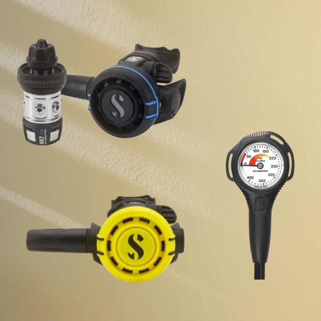 PACK ECOLE 1/MK2 EVO/R095 comprenant le détendeur SCUBAPRO MK2 EVO/R095, l’octopus SCUBAPRO R095 et le manomètre SCUBAPRO compact 400 bars.